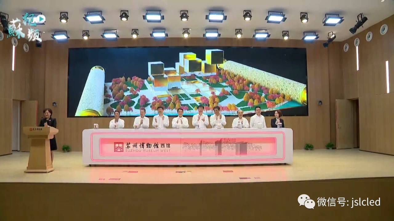 蘇州博物館西館啟幕儀式現場大屏,采用利亞德LED小間距顯示產品VEM1.5,江蘇亮彩作為此大屏的承建單位,有幸為蘇博西館提供顯示技術支持和服務保障,共同見證建成開放儀式。